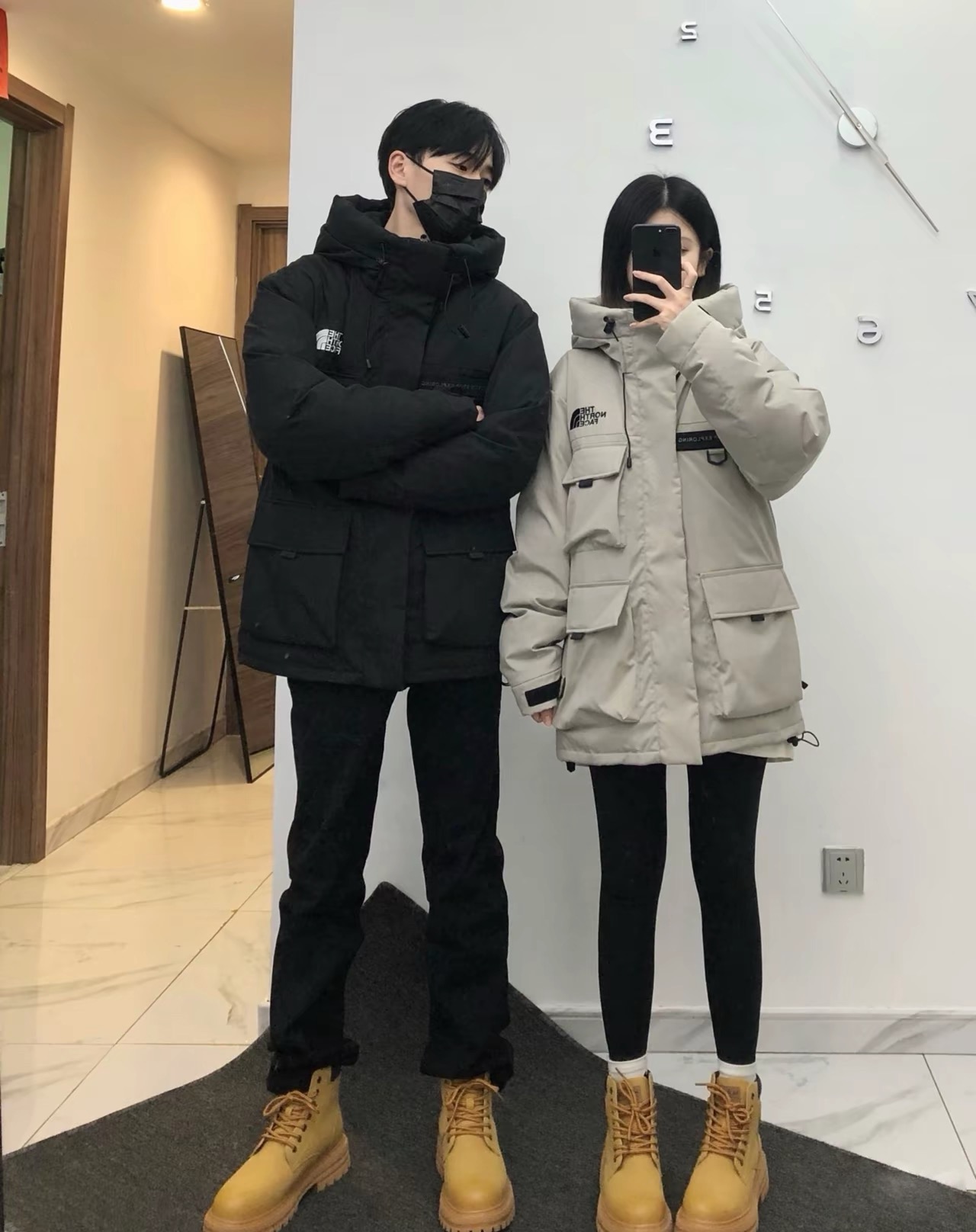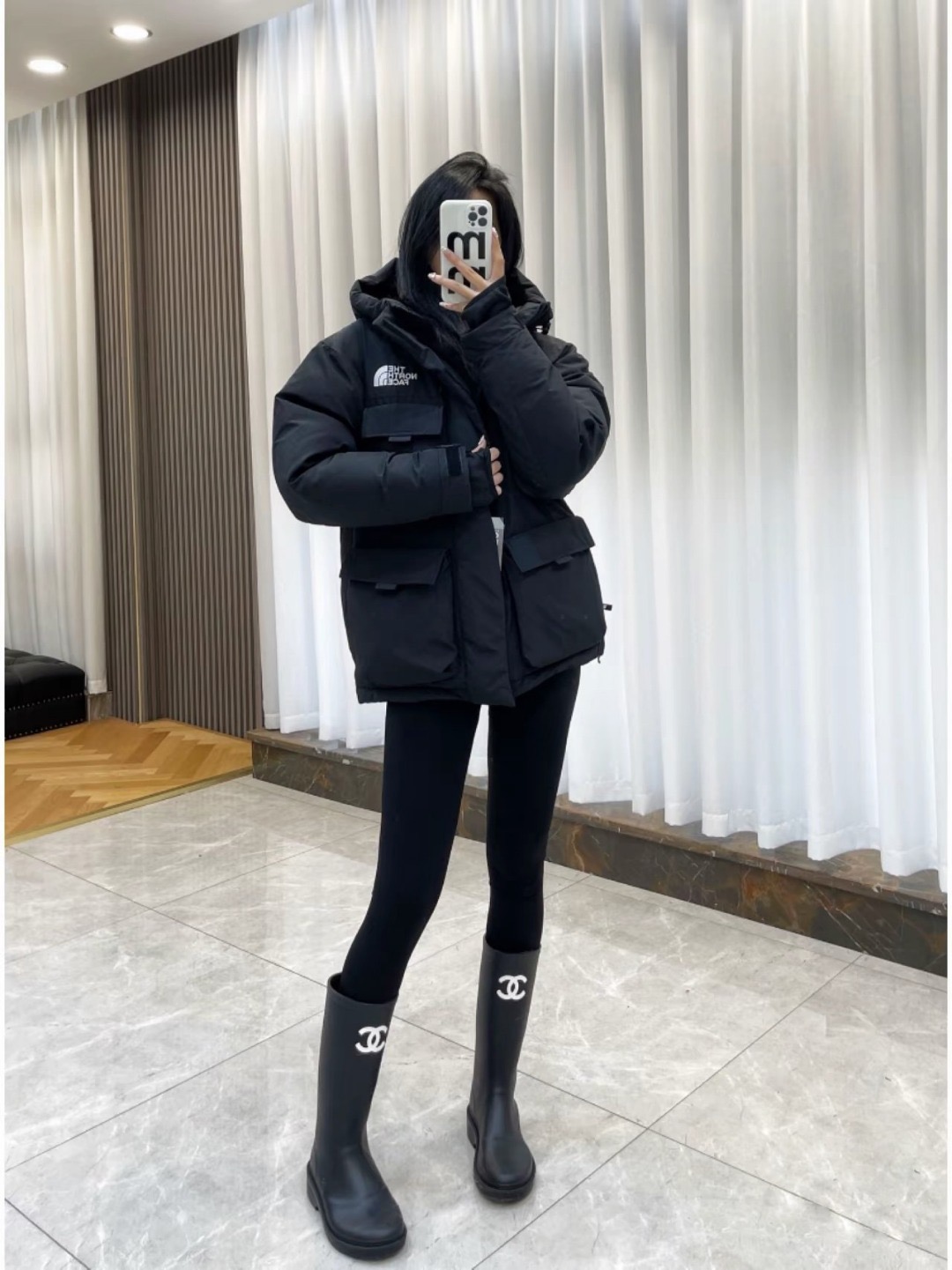 𝐓𝐡𝐞 𝐍𝐨𝐫𝐭𝐡 𝐅𝐚𝐜𝐞 F22 ノースフェイス 大きなポケット付きワークスタイルダウンコート 申ミナ(シン・ミナ)着用モデルmoncler