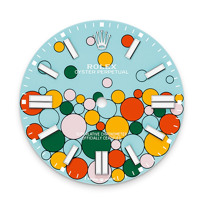 ロレックス オイスターパーペチュアル 41、オイスタースチール、41mm、ターコイズ セレブレーションモチーフ ダイヤル、Ref. 124300-0008